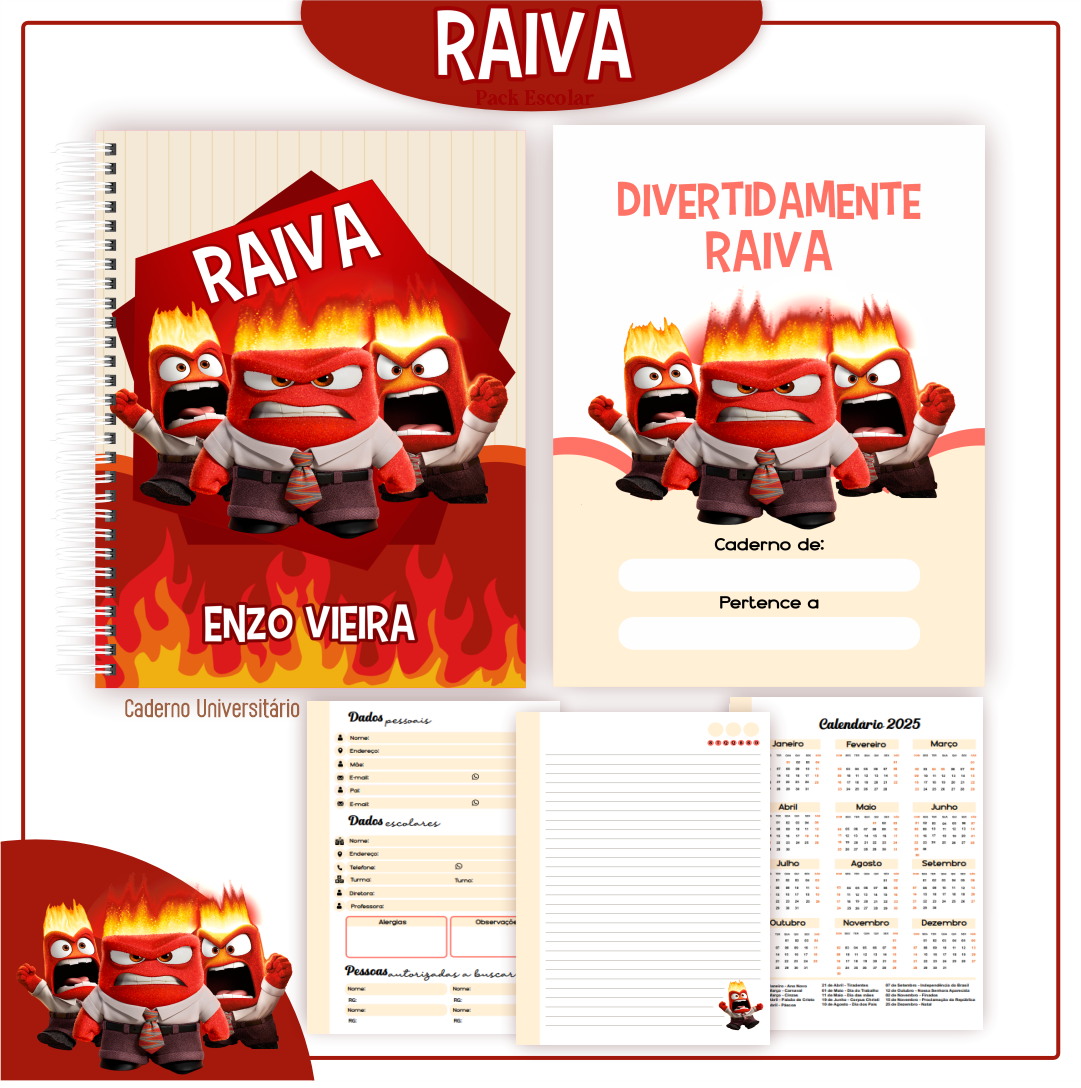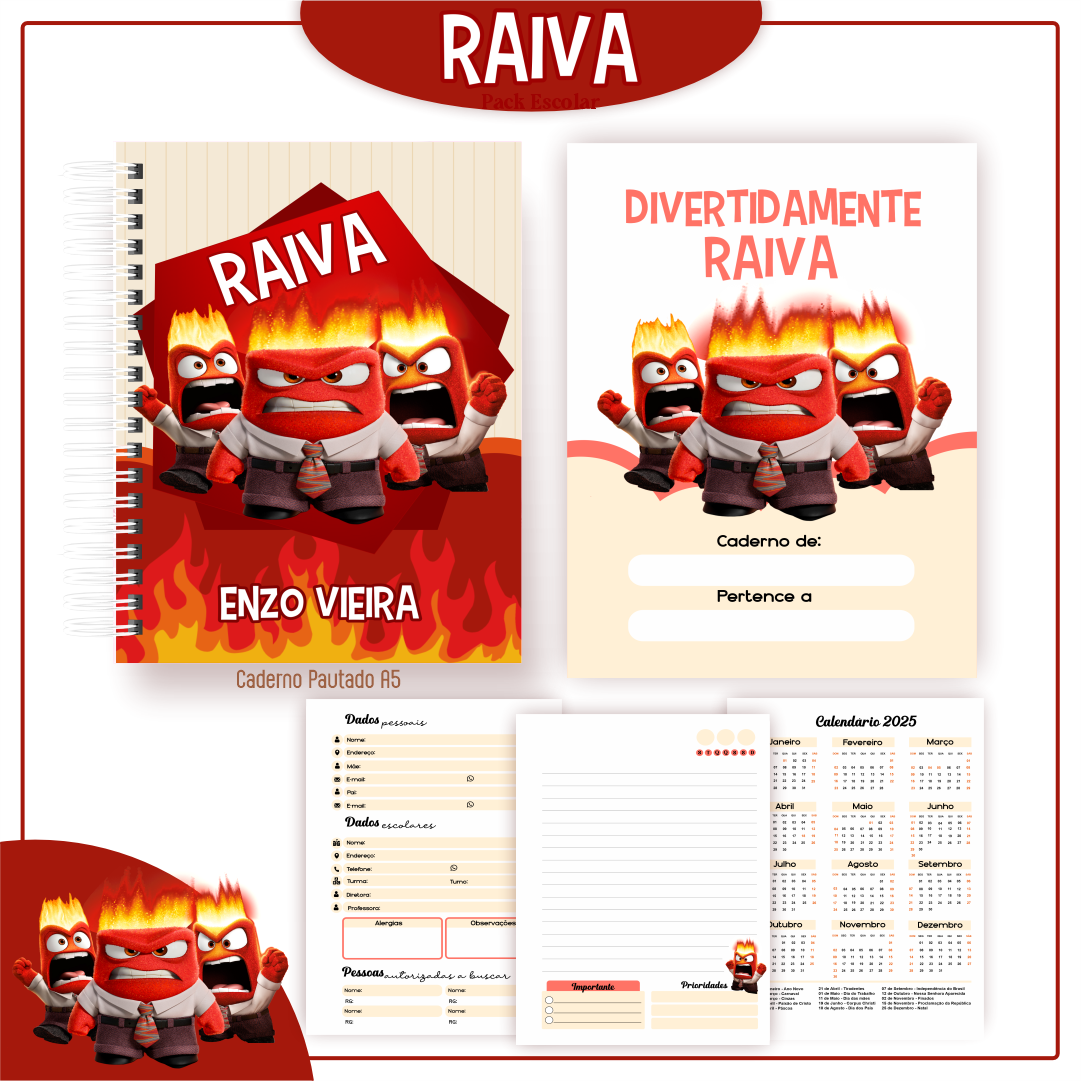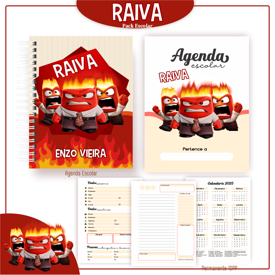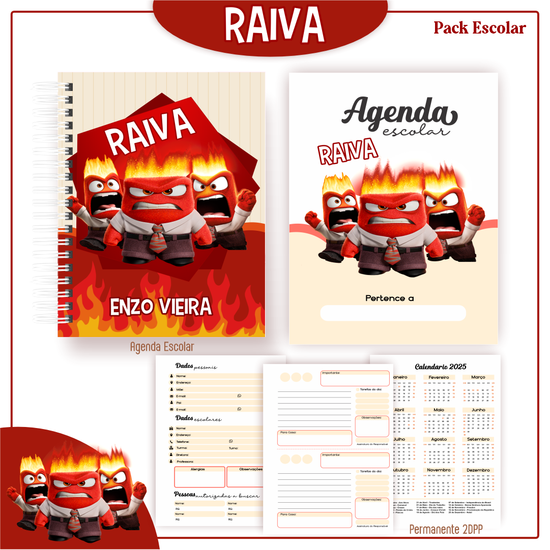Agenda e Etiquetas Escolares Divertidamente Raiva 2025 Arquivo Digital