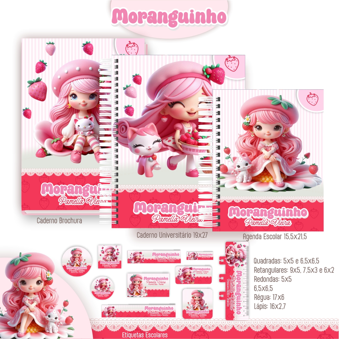 Arquivo Digital Escolar Moranguinho Etiquetas e Cadernos