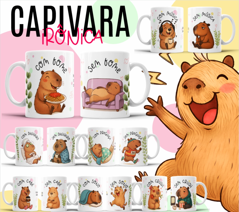 Arquivo Digital Estampa Canecas Capivara Irônica