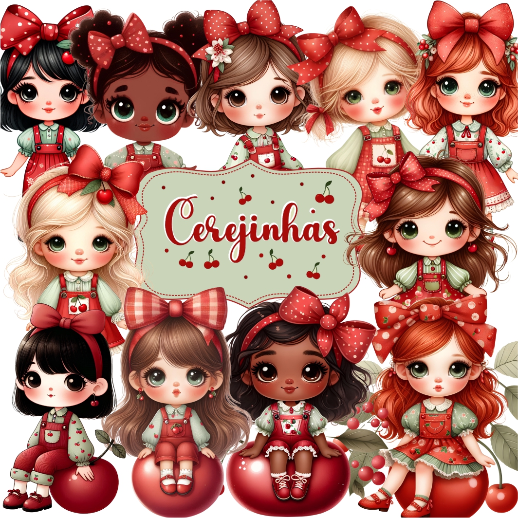 Kit Digital Cerejinha Cute, imagens em png com fundo transparente.