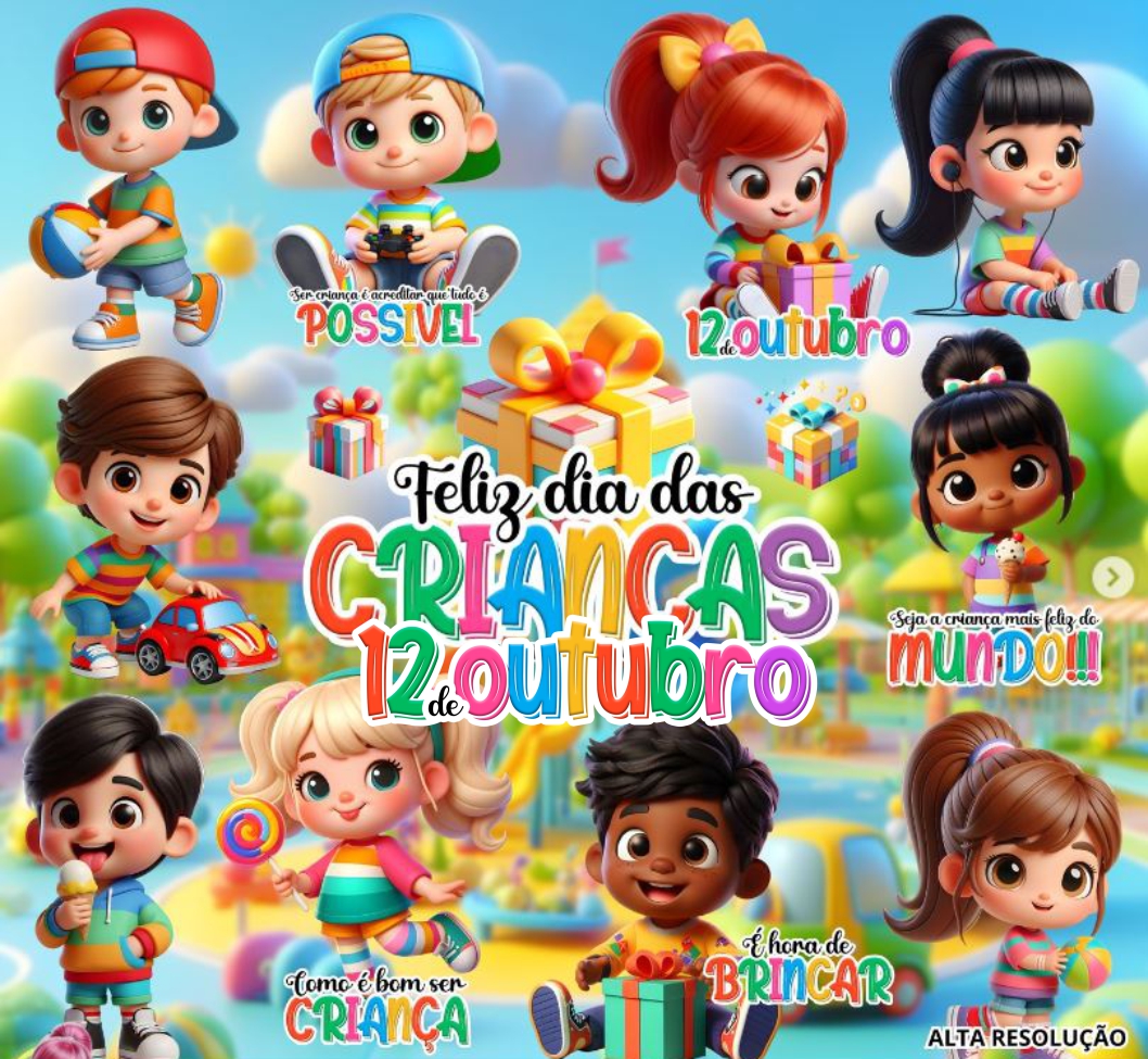 Kit Digital Dia das Crianças 3d, imagens em PNG com Fundo Transparente.