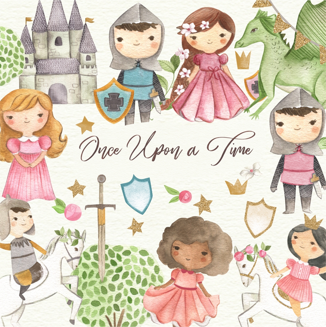 Kit Digital Era Uma Vez Once Upon a Time Aquarela PNG com Fundo Transparente.