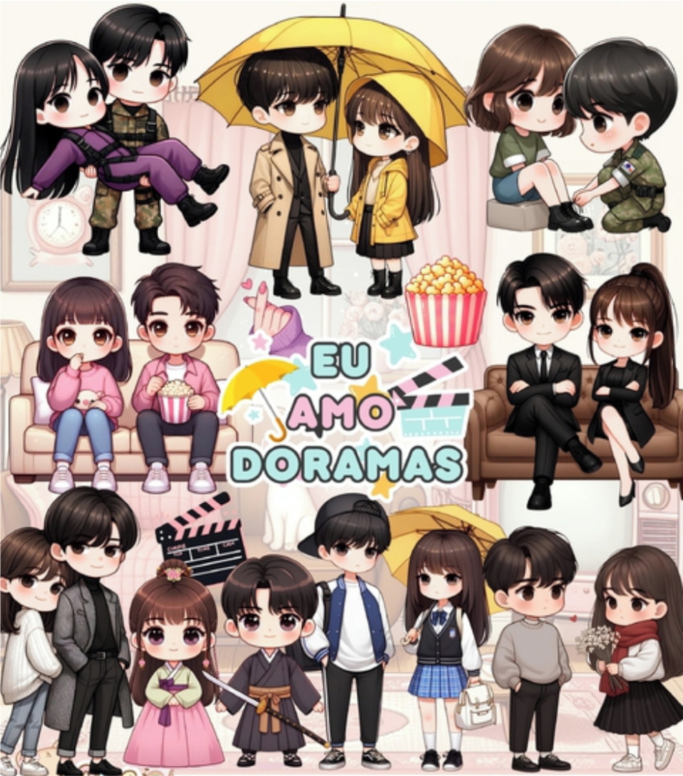 Kit Digital Eu Amo Doramas Dorameira, imagens em PNG com Fundo Transparente.