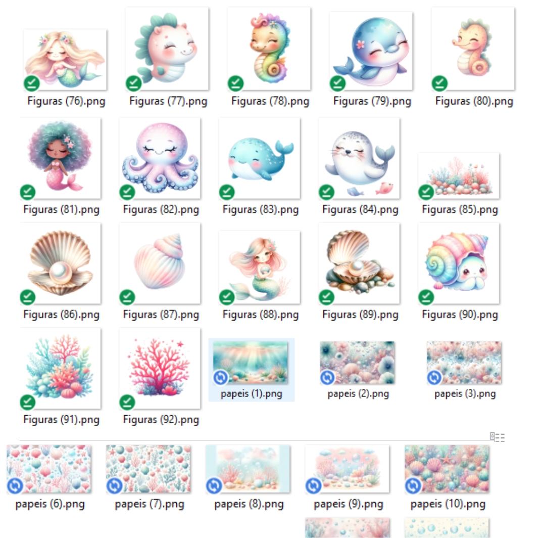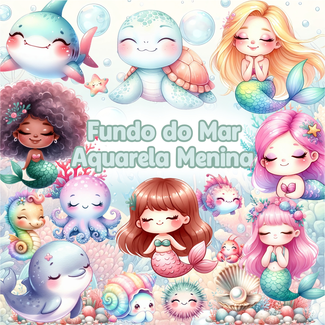 Kit Digital Fundo do Mar Aquarela Meninas em Png com Fundo Transparente
