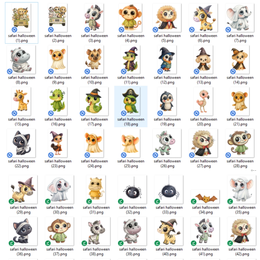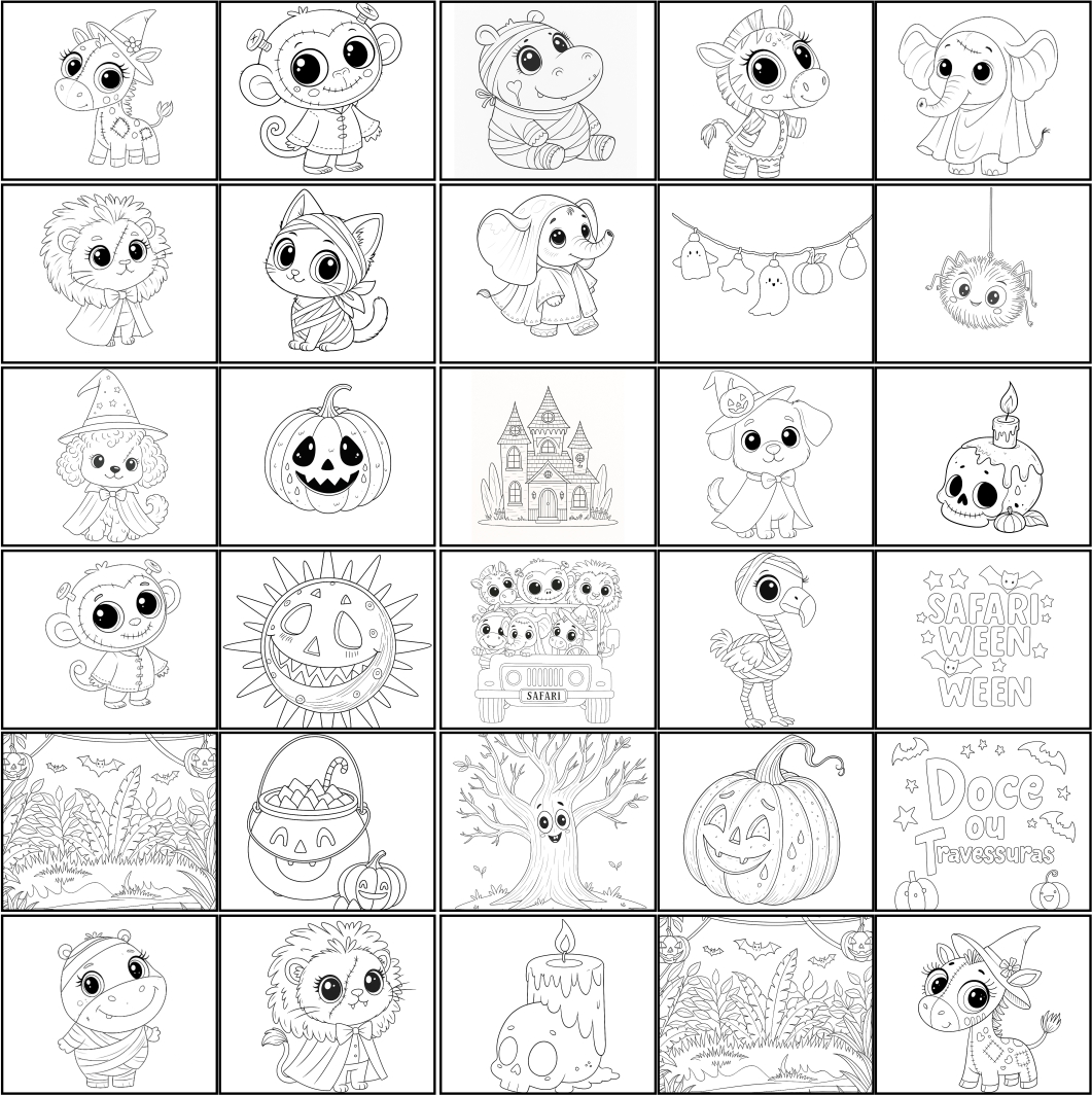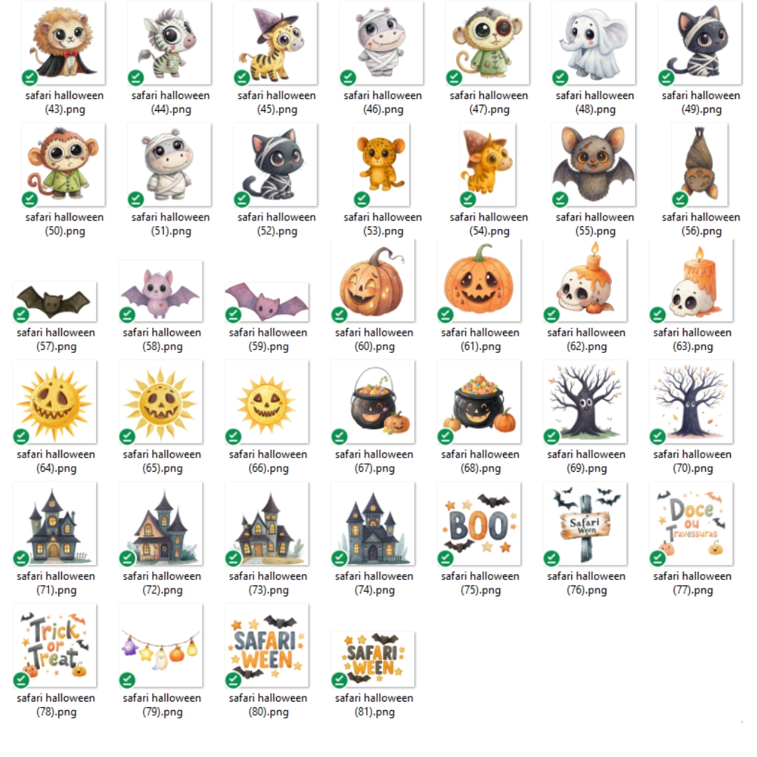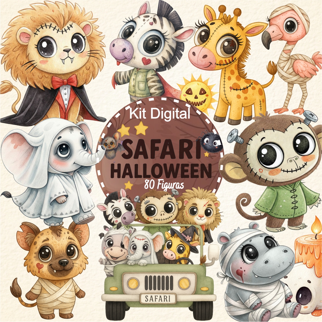 Kit Digital Halloween Safari Cute Aquarela. ilustrações em PNG com Fundo Transparente.