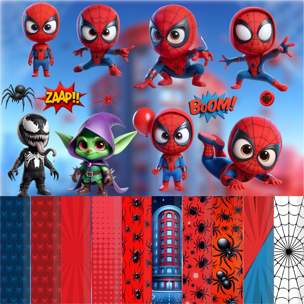 Kit Digital Homem Aranha Cute 3d, imagens em Png com Fundo Transparente.