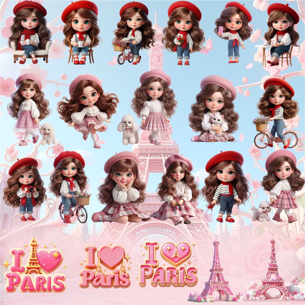 Kit Digital I Love Paris, imagens em PNG com Fundo Transparente.