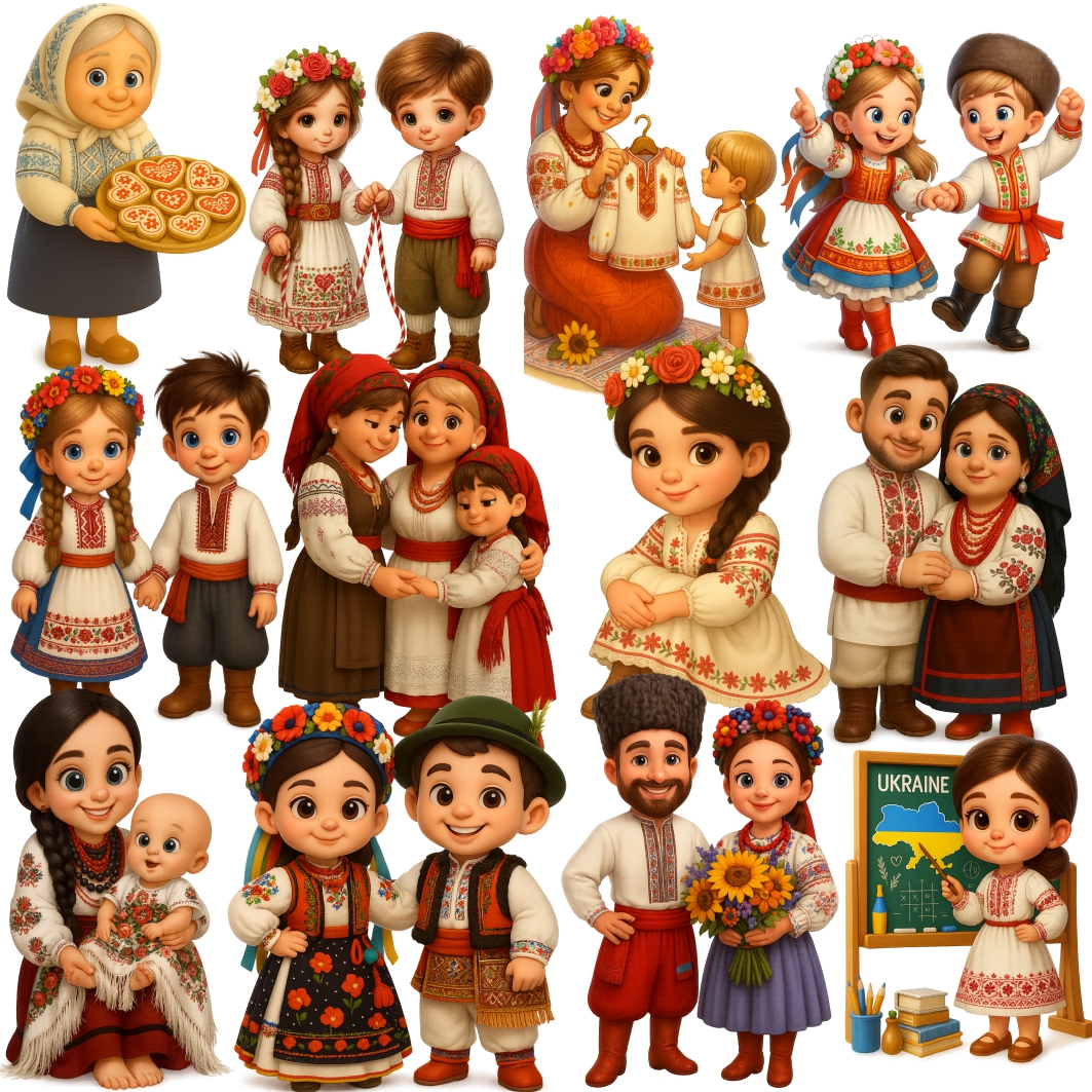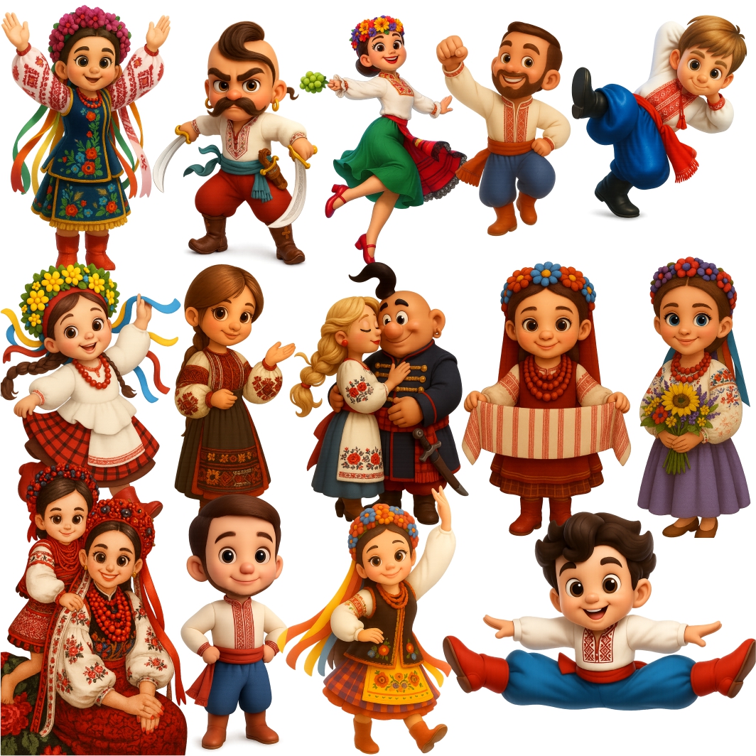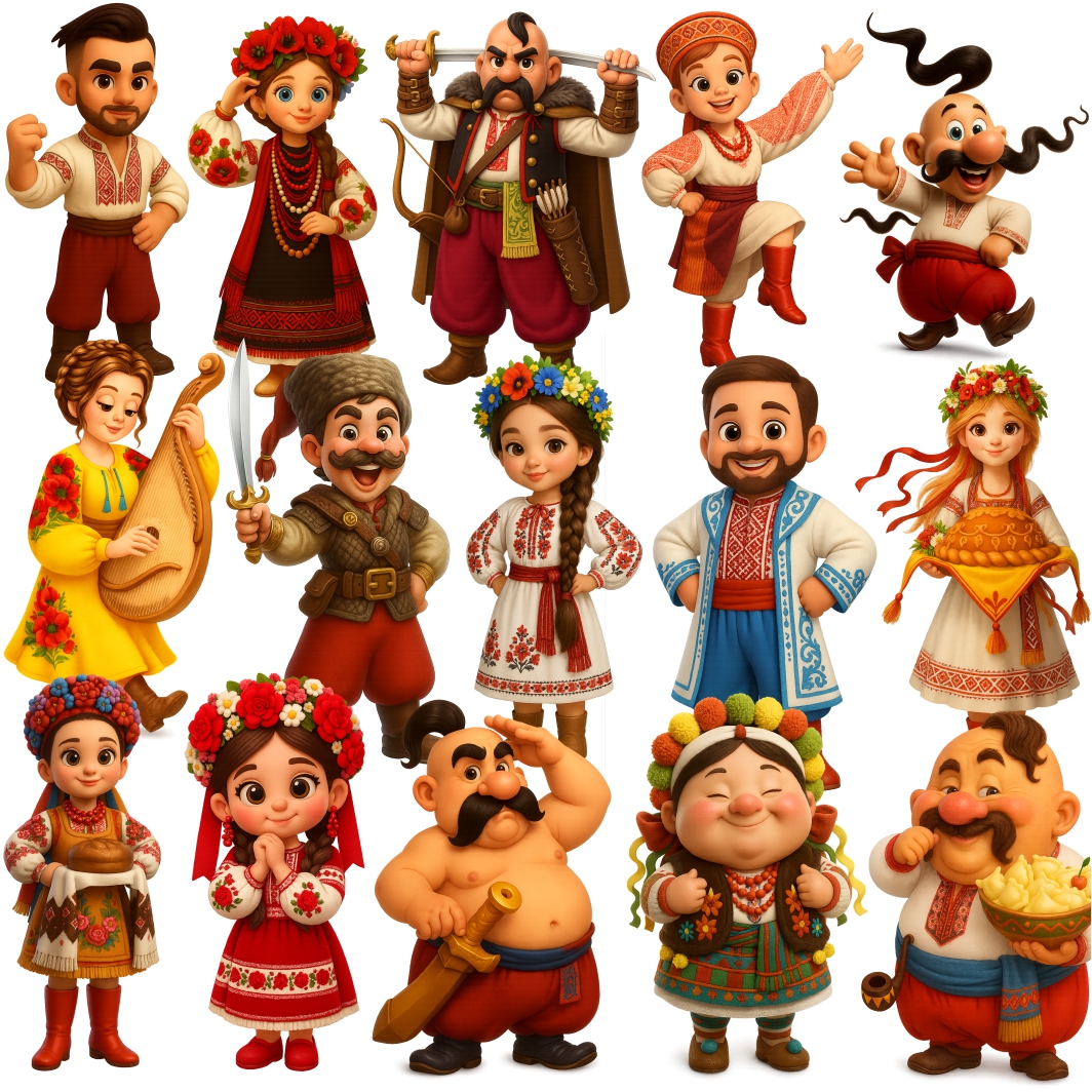 Kit Digital Mascótinhos Ucranianos Ucrânia Figuras em PNG com Fundo Transparente