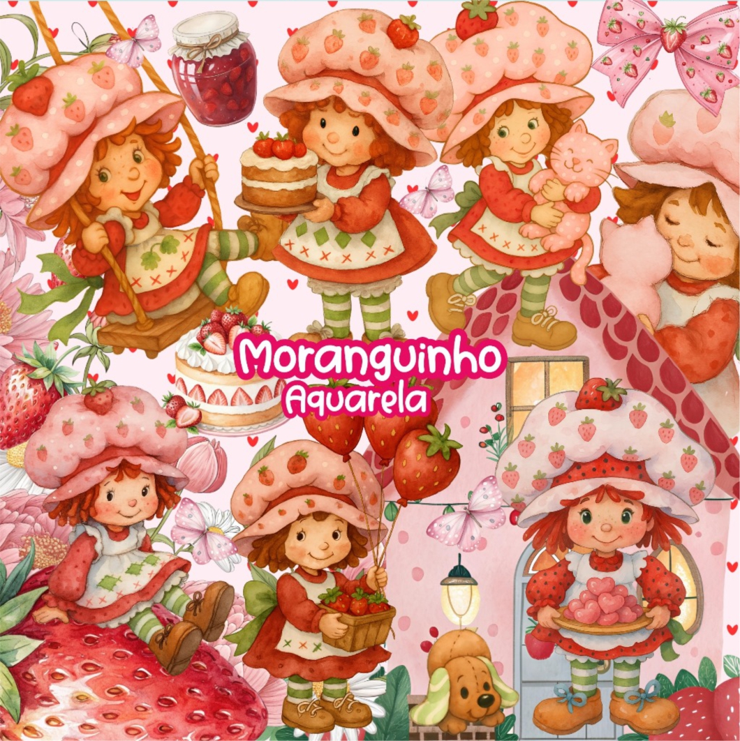 Kit Digital Moranguinho Aquarela, imagens em png com fundo transparente.