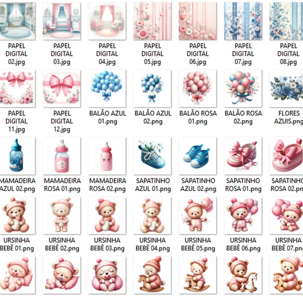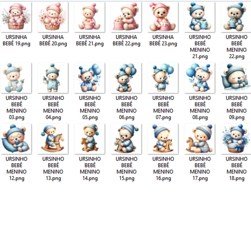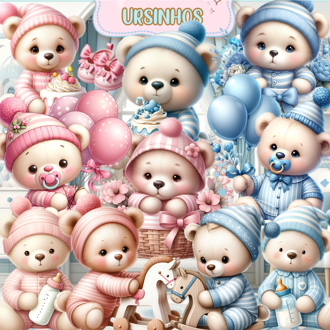 Kit Digital Ursinhos Bebê, imagens em PNG com Fundo Transparente.